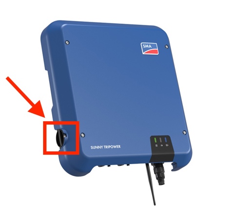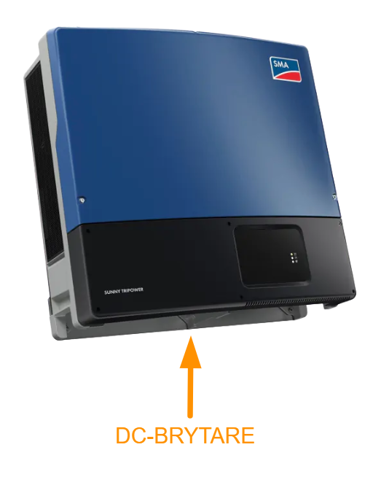 På andra versioner av SMA växelriktare som t.ex. SMA STP50 (Core 1) och SMA STP3-10kw, så är DC-brytaren ett vred på sidan av växelriktaren, som bilden nedan visar: